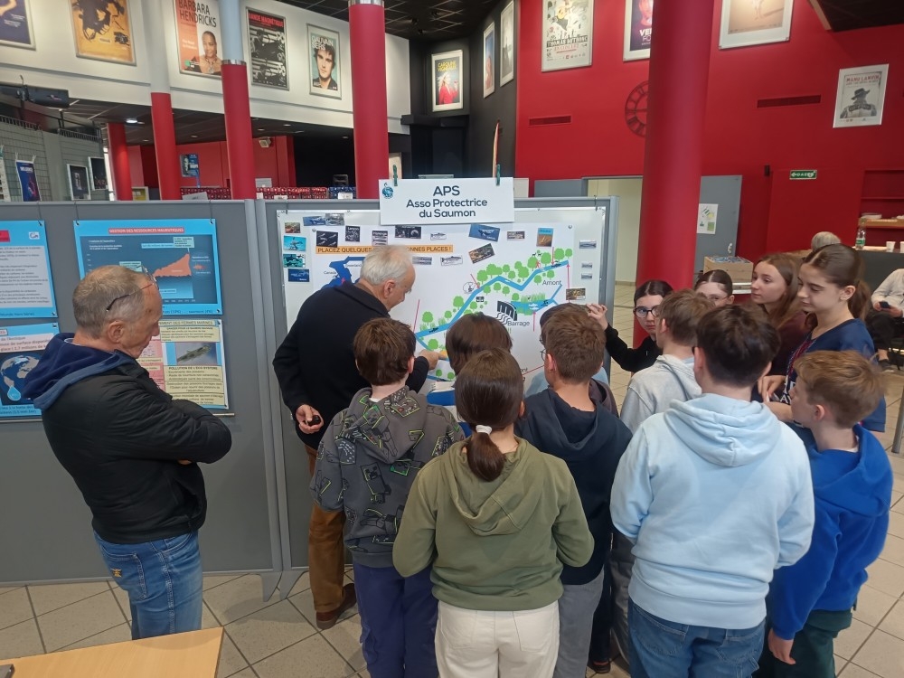 Le 31 mars 2026, nous étions à Issoire pour une journée H20, présentation du cycle du saumon de l’Allier, des effets du dérèglement climatique dans l’Océan aux collégiens (classes de 4ième) le matin et à des classes niveau Cours élémentaire l’après midi. Jean-Luc, Jean-Michel et Louis animaient le stand.